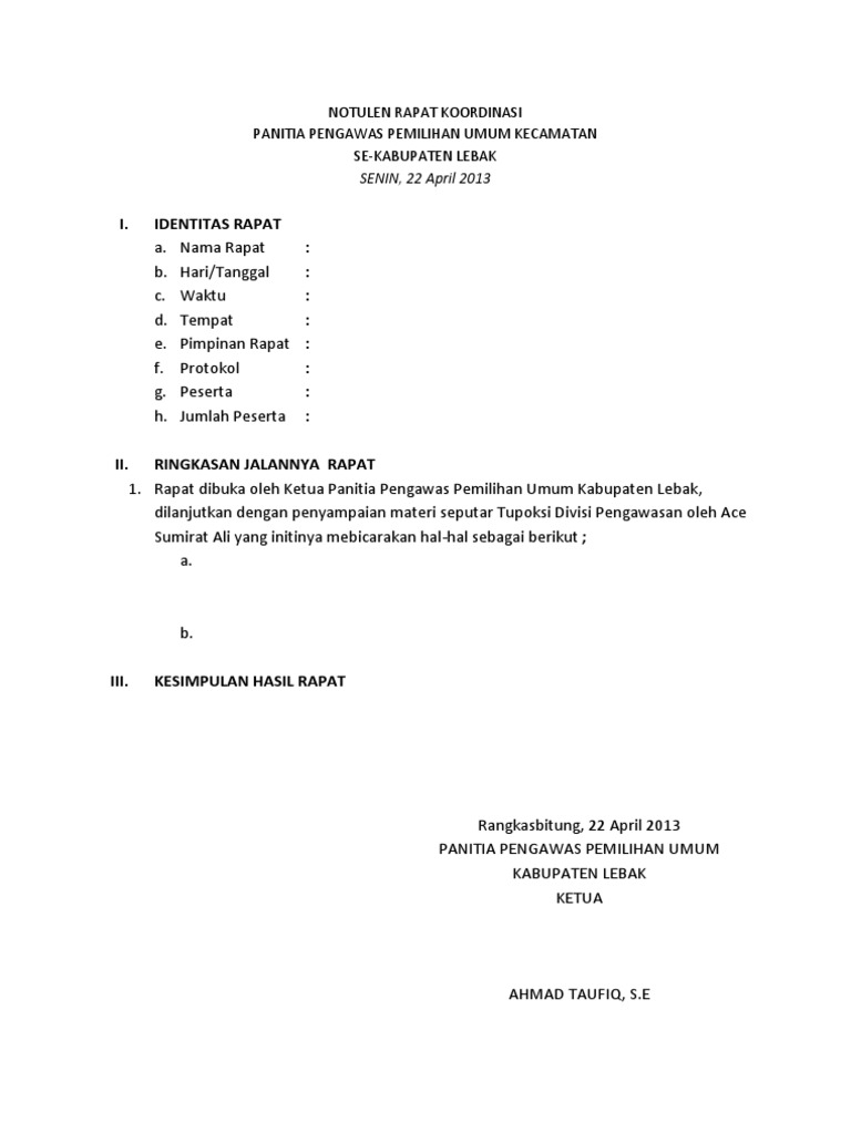 Related : Contoh Notulen Hasil Rapat Perusahaan / Notulen rapat adalah sebuah catatan singkat atau ringkasan dari hasil sebuah rapat..